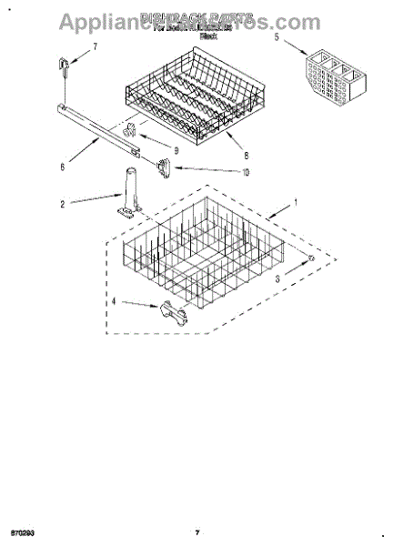 Dishwasher silverware basket holds and organizes utensils in the lower rack. Replace if cracked, broken, or missing to keep cutlery contained.