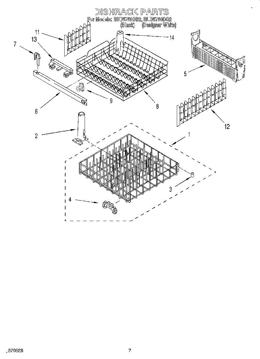 Lower dishrack assembly for dishwashers. Holds dishes, pots, and pans in the bottom section. Replace when rusted, cracked, or coating is worn or peeling.