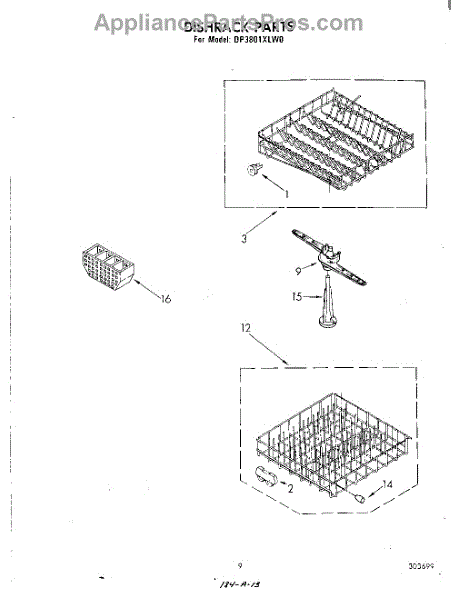 Parts for Whirlpool DP3801XLW0: 06 - Dishrack Parts