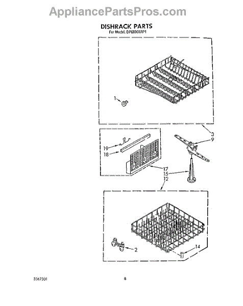 Parts for Whirlpool DP6000XRP1: 05 - Dishrack Parts