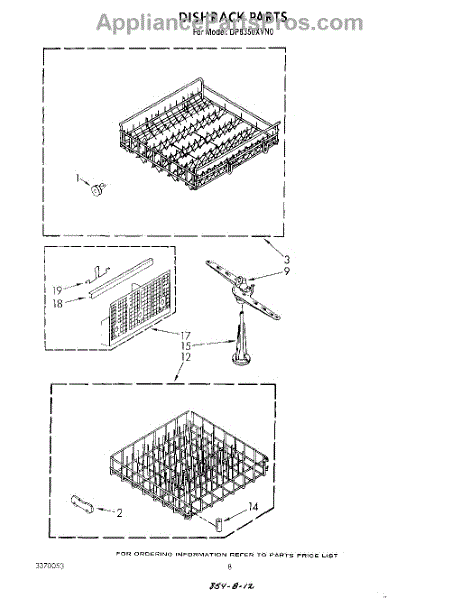 Parts for Whirlpool DP8350XVN0: 05 - Dishrack Parts
