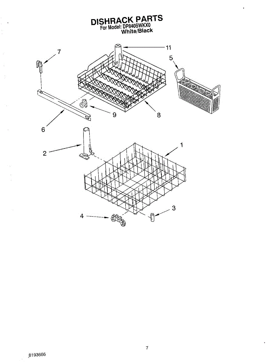 Replacement silverware basket for dishwasher lower rack. Holds utensils securely during wash cycles. Replace if cracked, warped, damaged, or missing.