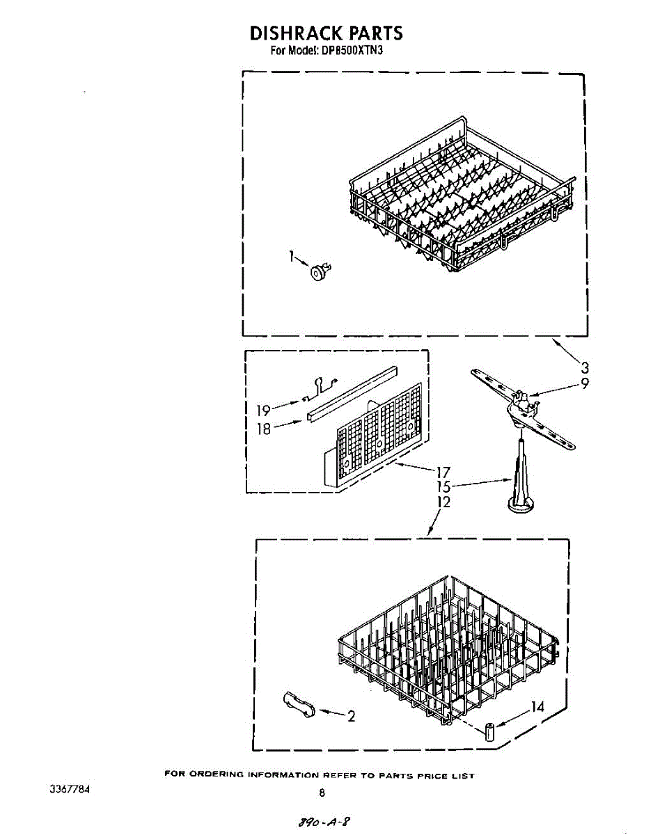 Parts for Whirlpool DP8500XTN3: 05 - Dishrack Parts
