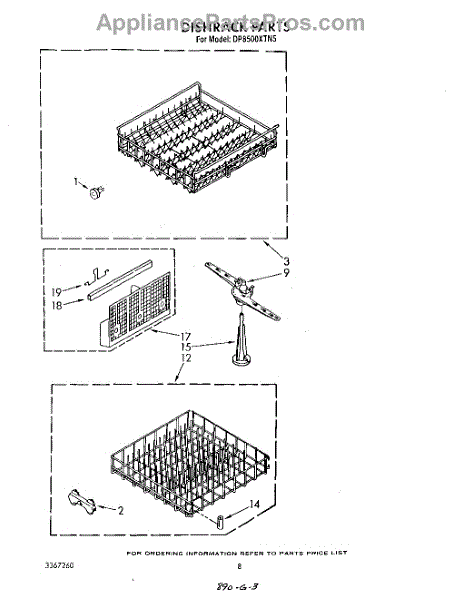 Parts for Whirlpool DP8500XTN5: 05 - Dishrack Parts