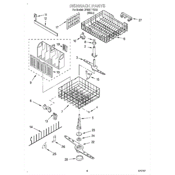 The Lower Dishwasher Rack Assembly is an OEM part for Whirlpool dishwashers. This part holds and organizes dishes, pots, and pans in the lower section of the dishwasher, ensuring they are properly positioned for effective cleaning.