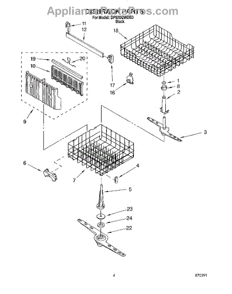 Parts for Whirlpool DP920QWDB3: 04 - Dishrack Parts