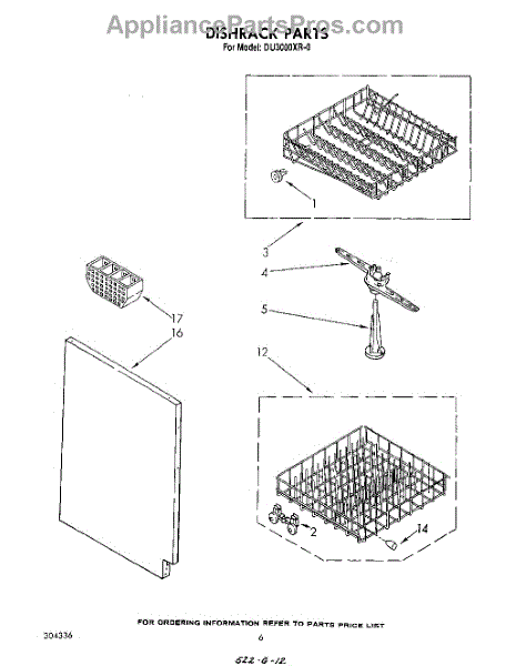 Parts for Whirlpool DU3000XR0: 04 - Dishrack Parts