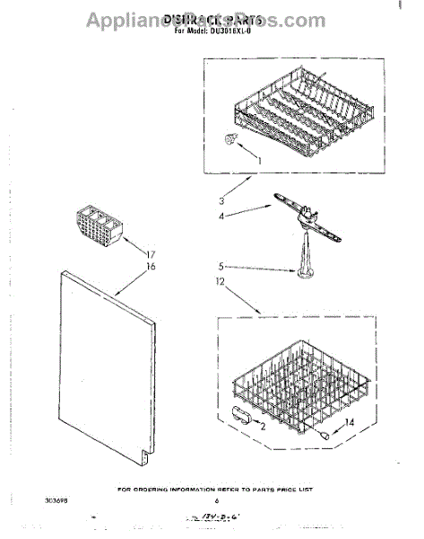 Parts for Whirlpool DU3016XL0: 04 - Dishrack Parts