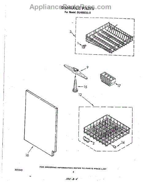 Parts for Whirlpool DU4000XL0: 03 - Dishrack Parts