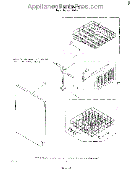 Parts for Whirlpool DU4500XR0: 04 - Dishrack Parts