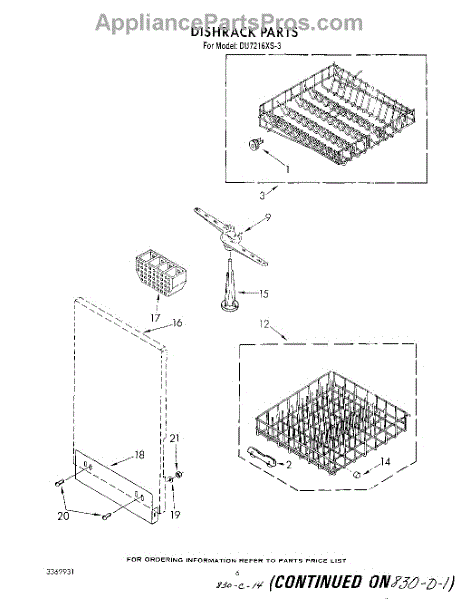 Parts for Whirlpool DU7216XS3: 04 - Dishrack Parts