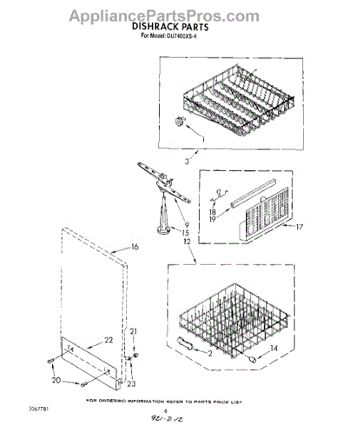 Parts for Whirlpool DU7400XS4: 04 - Dishrack Parts