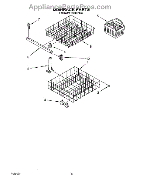 Parts for Whirlpool DU8016XX2: 07 - Dishrack Parts