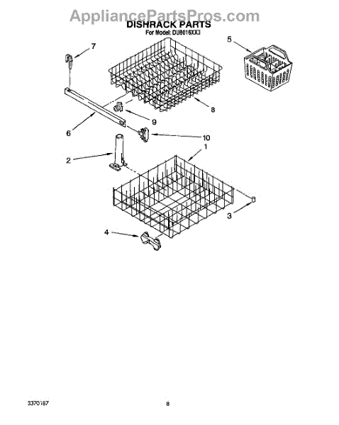 Parts for Whirlpool DU8016XX3: 07 - Dishrack Parts