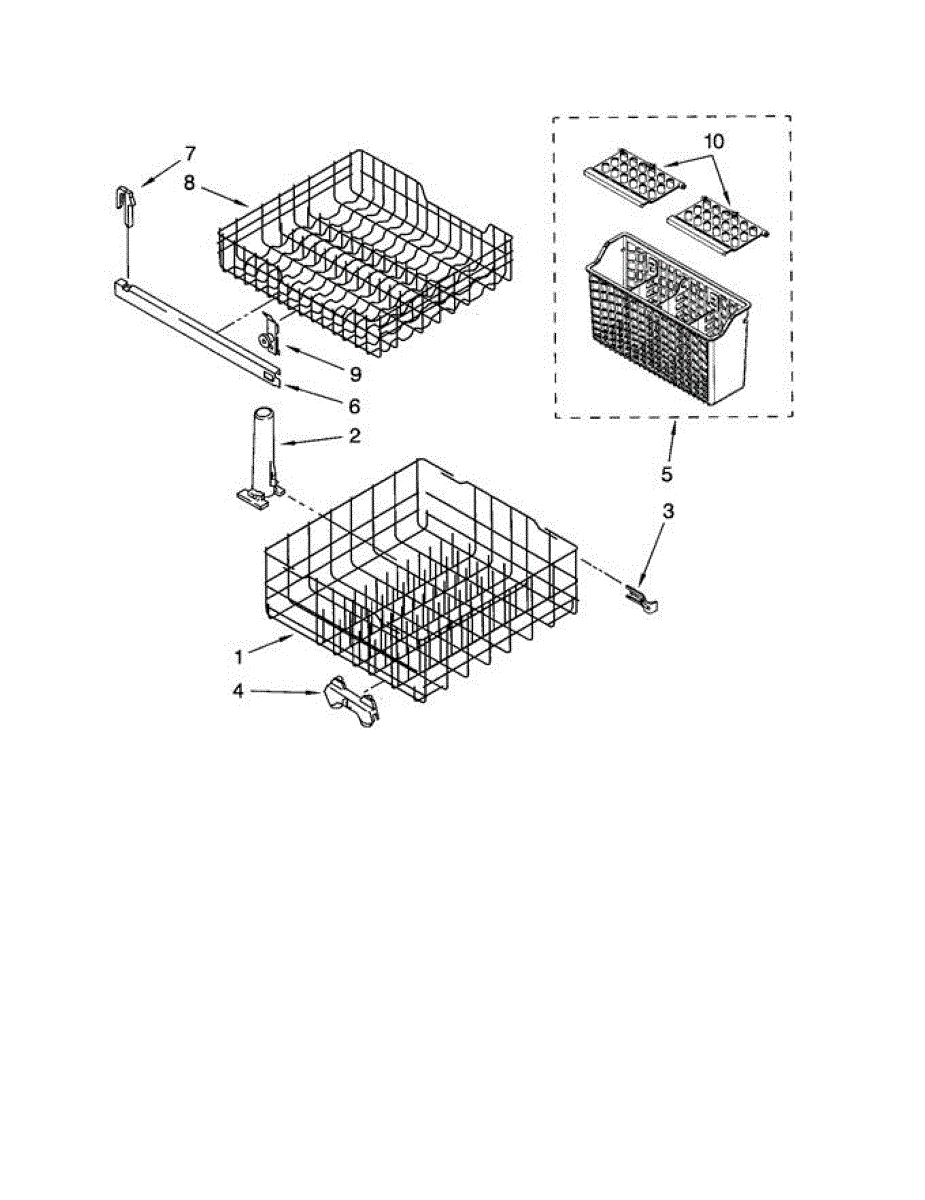 Guides the upper rack smoothly in and out of your dishwasher. Replace if cracked, broken, or wheels no longer roll properly along the track.