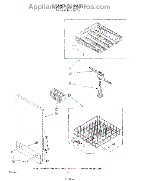 Parts for Whirlpool DU8116XT0: 04 - Dishrack Parts