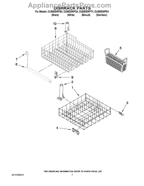 Parts for Whirlpool DU850SWPB4: 06 - Dishrack Parts