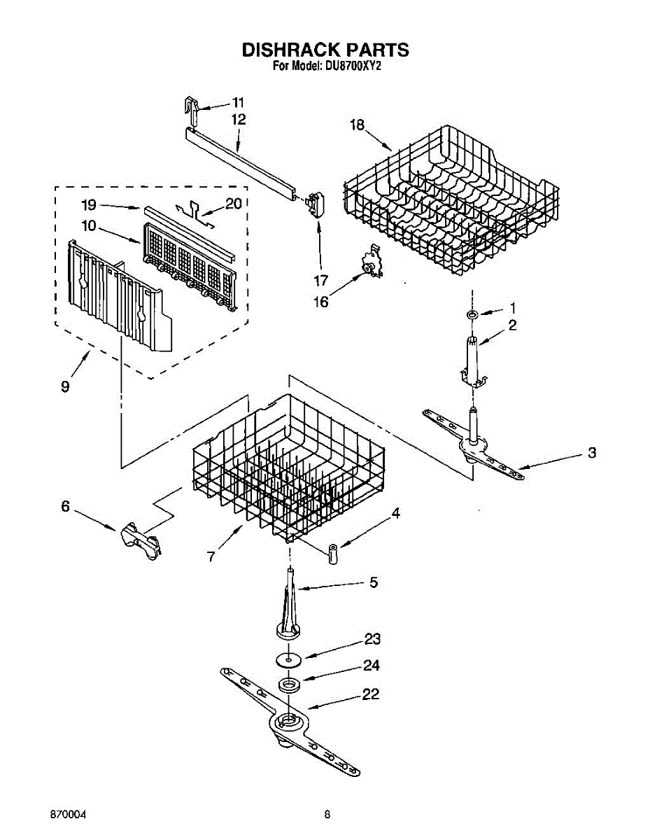 Lower dishrack assembly for dishwashers. Holds dishes, pots, and pans in the bottom section. Replace when rusted, cracked, or coating is worn or peeling.