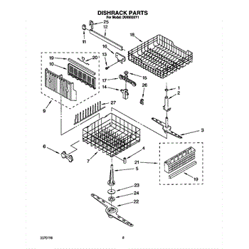 The Lower Dishwasher Rack Assembly is an OEM part for Whirlpool dishwashers. This part holds and organizes dishes, pots, and pans in the lower section of the dishwasher, ensuring they are properly positioned for effective cleaning.