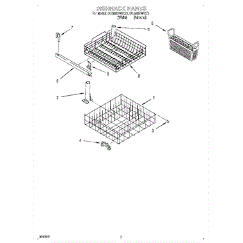 Lower dishrack assembly for dishwashers. Holds dishes, pots, and pans in the bottom section. Replace when rusted, cracked, or coating is worn or peeling.