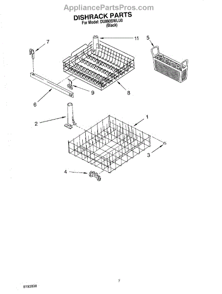 Parts for Whirlpool DU890SWLU0: 06 - Dishrack Parts