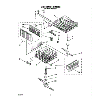 The Lower Dishwasher Rack Assembly is an OEM part for Whirlpool dishwashers. This part holds and organizes dishes, pots, and pans in the lower section of the dishwasher, ensuring they are properly positioned for effective cleaning.