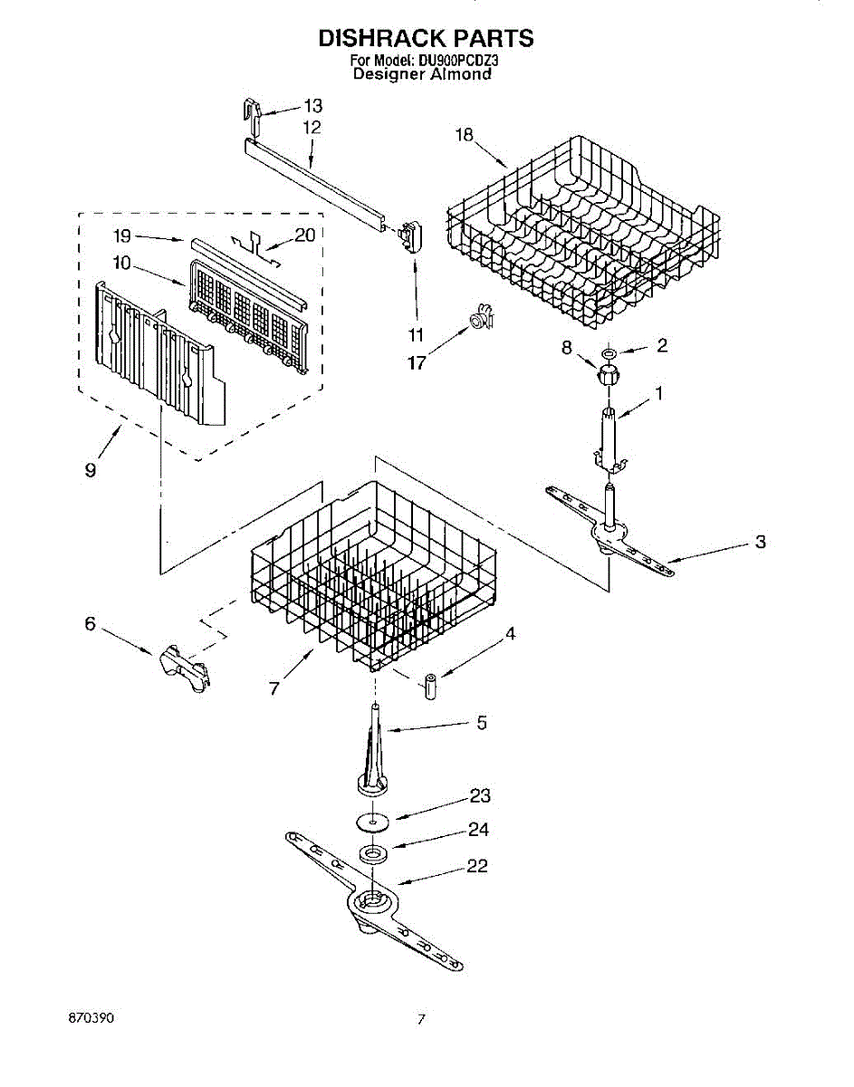 Lower dishrack assembly for dishwashers. Holds dishes, pots, and pans in the bottom section. Replace when rusted, cracked, or coating is worn or peeling.