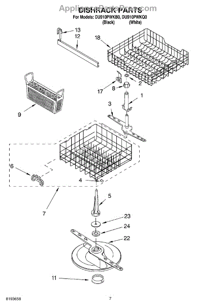 Parts for Whirlpool DU910PWKQ0: 05 - Dishrack Parts