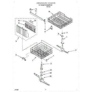 The Lower Dishwasher Rack Assembly is an OEM part for Whirlpool dishwashers. This part holds and organizes dishes, pots, and pans in the lower section of the dishwasher, ensuring they are properly positioned for effective cleaning.