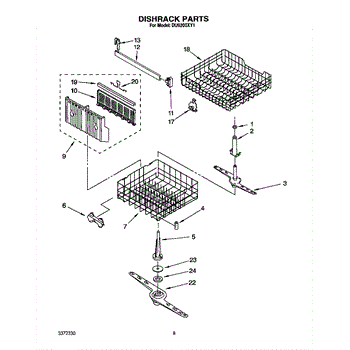 The Lower Dishwasher Rack Assembly is an OEM part for Whirlpool dishwashers. This part holds and organizes dishes, pots, and pans in the lower section of the dishwasher, ensuring they are properly positioned for effective cleaning.