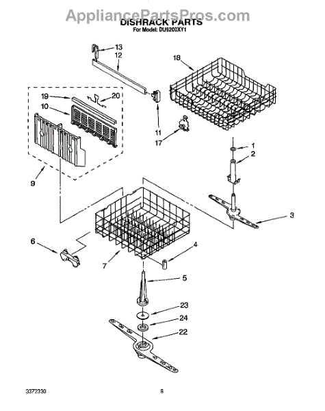 This dishrack replaces a damaged, rusted, or warped rack to restore smooth loading and secure support for dishes. A solid rack keeps items upright for better spray coverage, cleaner results, and helps prevent rust transfer and chipping.