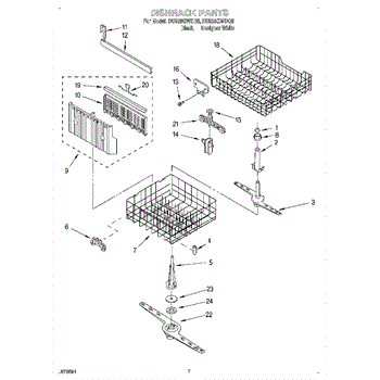 The Lower Dishwasher Rack Assembly is an OEM part for Whirlpool dishwashers. This part holds and organizes dishes, pots, and pans in the lower section of the dishwasher, ensuring they are properly positioned for effective cleaning.