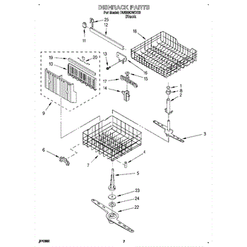 The Lower Dishwasher Rack Assembly is an OEM part for Whirlpool dishwashers. This part holds and organizes dishes, pots, and pans in the lower section of the dishwasher, ensuring they are properly positioned for effective cleaning.