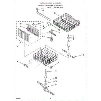 Lower dishrack assembly for dishwashers. Holds dishes, pots, and pans in the bottom section. Replace when rusted, cracked, or coating is worn or peeling.