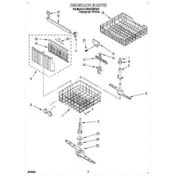The Lower Dishwasher Rack Assembly is an OEM part for Whirlpool dishwashers. This part holds and organizes dishes, pots, and pans in the lower section of the dishwasher, ensuring they are properly positioned for effective cleaning.