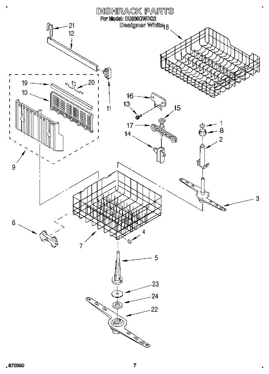 Lower dishrack assembly for dishwashers. Holds dishes, pots, and pans in the bottom section. Replace when rusted, cracked, or coating is worn or peeling.