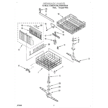The Lower Dishwasher Rack Assembly is an OEM part for Whirlpool dishwashers. This part holds and organizes dishes, pots, and pans in the lower section of the dishwasher, ensuring they are properly positioned for effective cleaning.