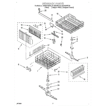 The Lower Dishwasher Rack Assembly is an OEM part for Whirlpool dishwashers. This part holds and organizes dishes, pots, and pans in the lower section of the dishwasher, ensuring they are properly positioned for effective cleaning.