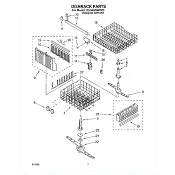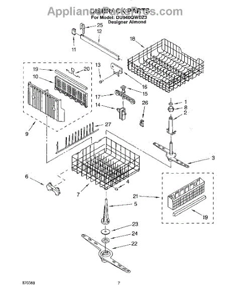 The Lower Dishwasher Rack Assembly is an OEM part for Whirlpool dishwashers. This part holds and organizes dishes, pots, and pans in the lower section of the dishwasher, ensuring they are properly positioned for effective cleaning.