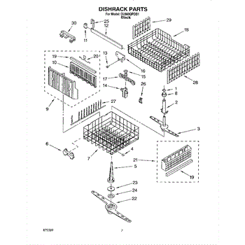 The Lower Dishwasher Rack Assembly is an OEM part for Whirlpool dishwashers. This part holds and organizes dishes, pots, and pans in the lower section of the dishwasher, ensuring they are properly positioned for effective cleaning.