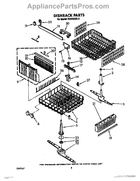 The Lower Dishwasher Rack Assembly is an OEM part for Whirlpool dishwashers. This part holds and organizes dishes, pots, and pans in the lower section of the dishwasher, ensuring they are properly positioned for effective cleaning.