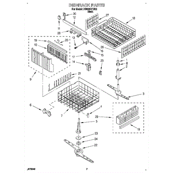Lower dishrack assembly for dishwashers. Holds dishes, pots, and pans in the bottom section. Replace when rusted, cracked, or coating is worn or peeling.