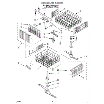 The Lower Dishwasher Rack Assembly is an OEM part for Whirlpool dishwashers. This part holds and organizes dishes, pots, and pans in the lower section of the dishwasher, ensuring they are properly positioned for effective cleaning.