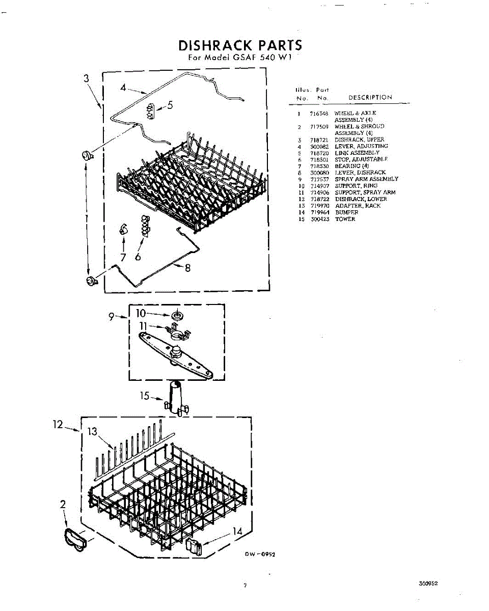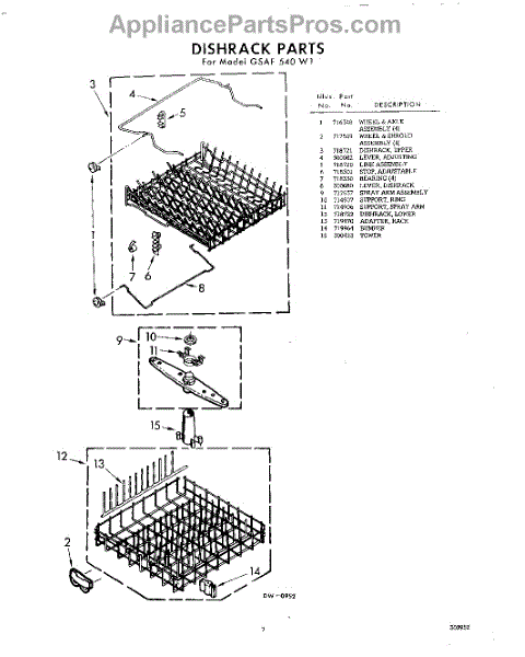 Parts for Whirlpool GSAF540W1: 07 - Dishrack Parts