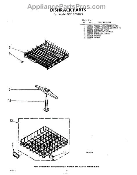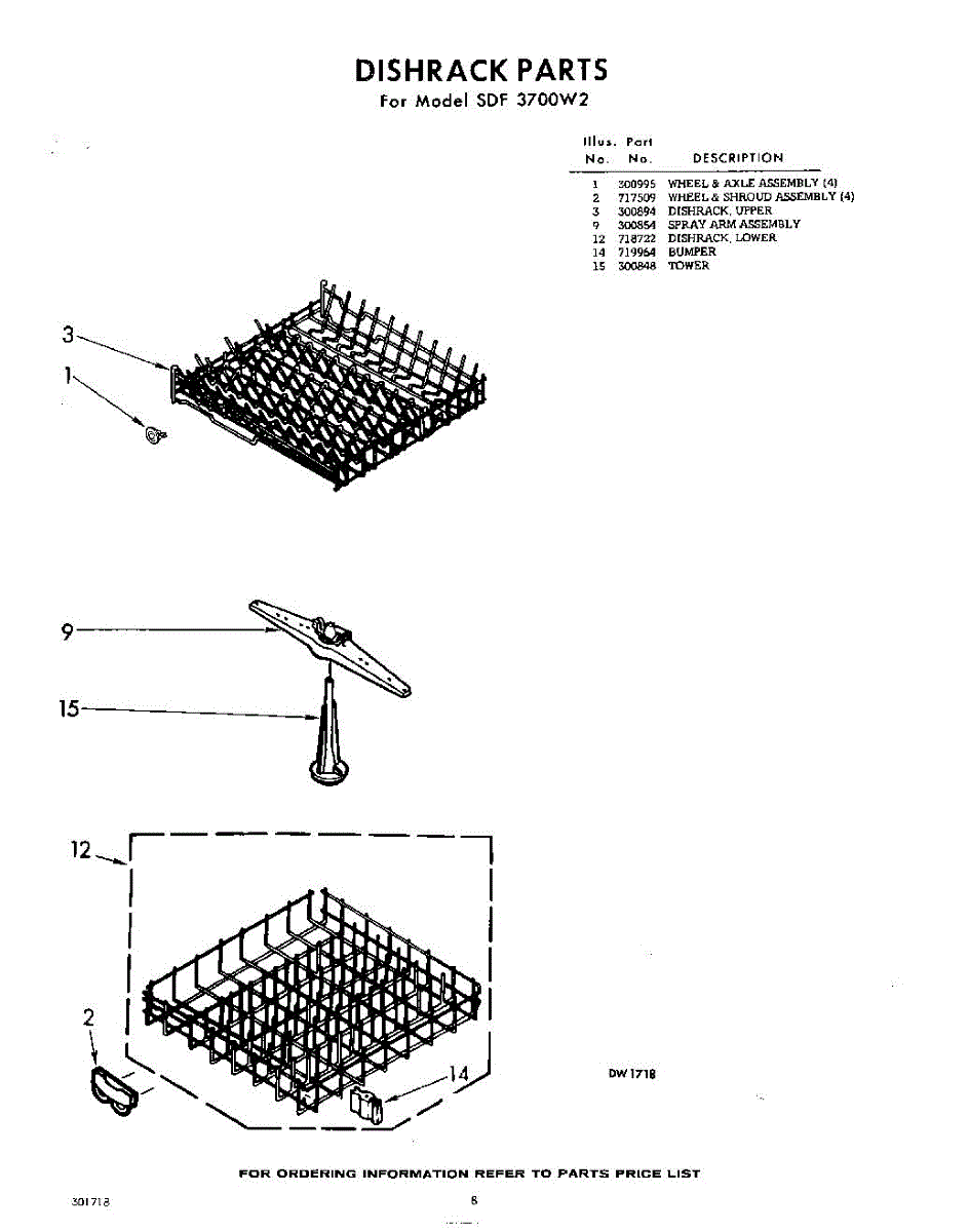 Parts for Whirlpool SDF3700W2: 08 - Dishrack Parts