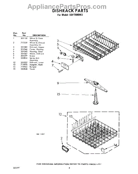 Parts for Whirlpool SDF7800W3: 08 - Dishrack Parts