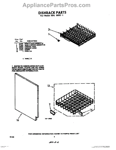 Parts for Whirlpool SDU30001: 06 - Dishrack Parts
