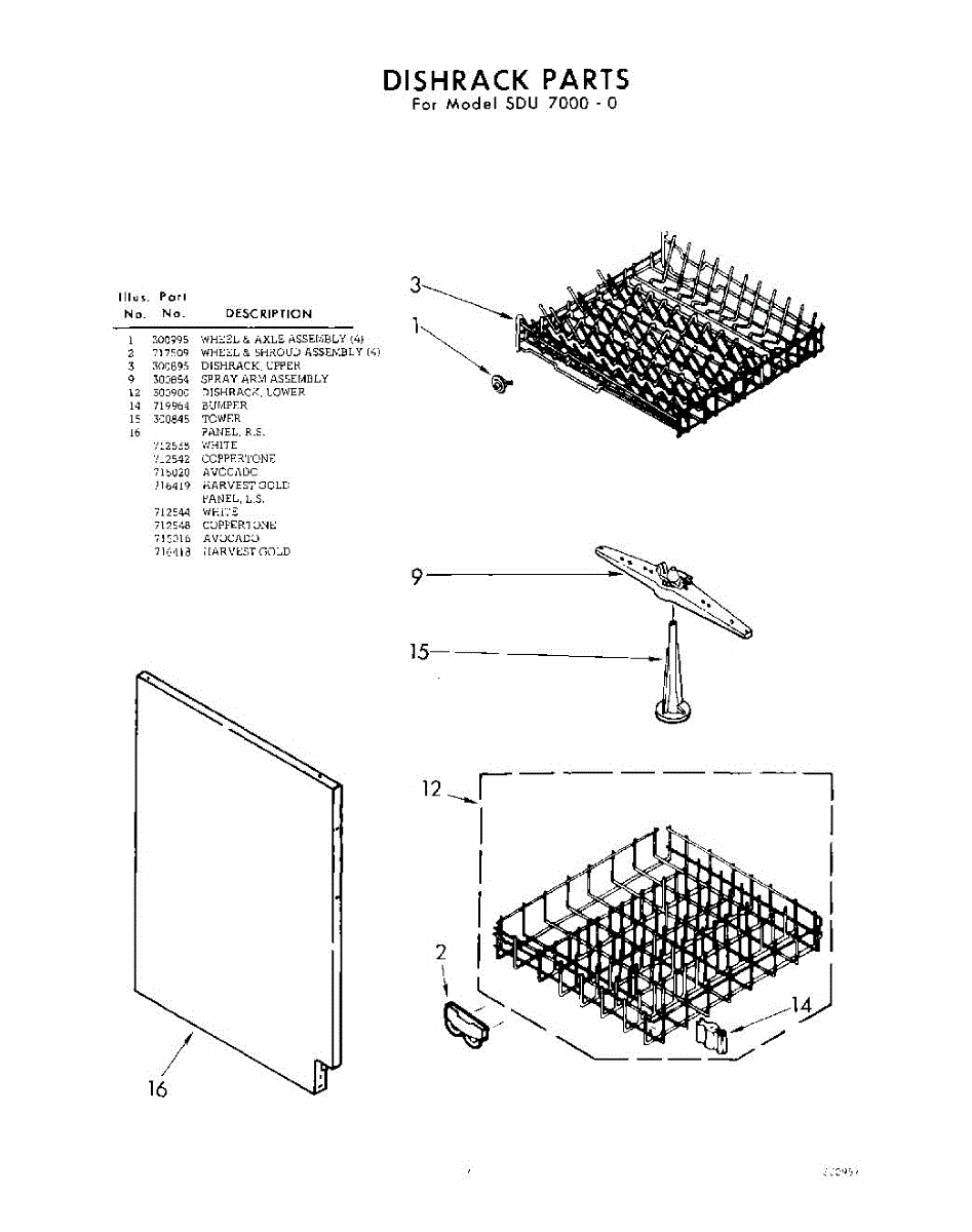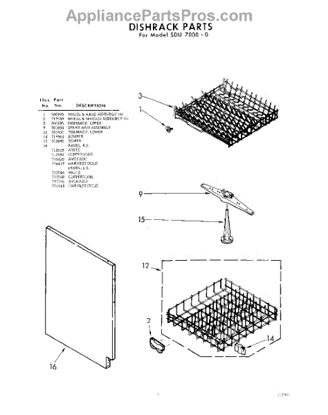 Parts for Whirlpool SDU70000: 07 - Dishrack Parts