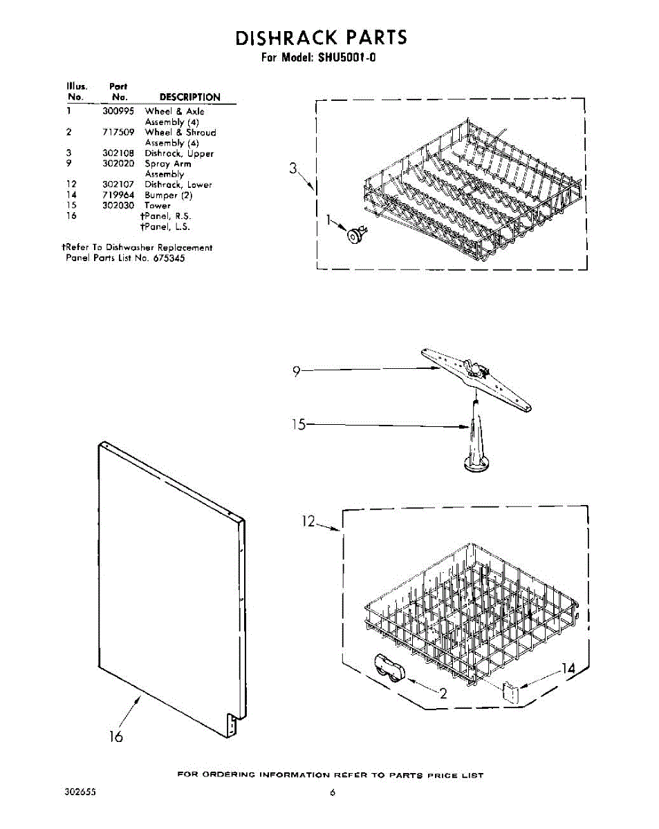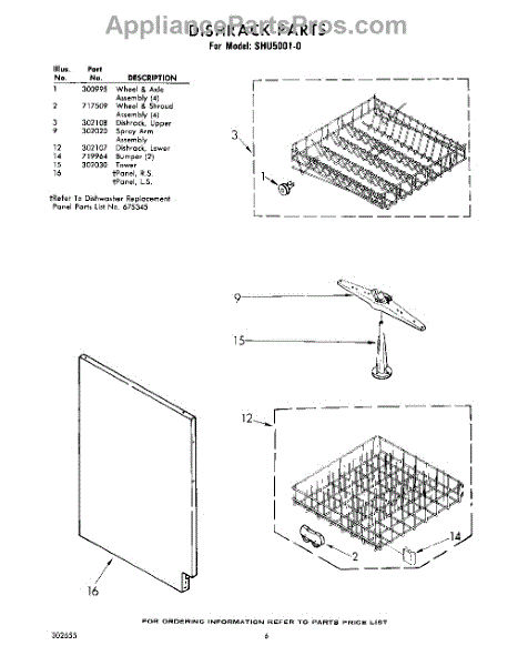 Parts for Whirlpool SHU50010: 06 - Dishrack Parts