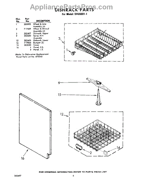 Parts for Whirlpool SHU60011: 06 - Dishrack Parts